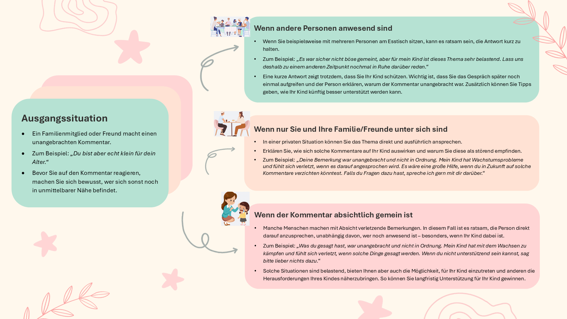 Kinder erleben immer wieder Situationen, in denen ihr Aussehen kommentiert wird – oft sogar von Menschen, die ihnen besonders nahestehen. Aussagen wie „Du bist so klein“, „Du bist so dünn“ oder „Iss mal was Richtiges“ sind in vielen Familien keine Seltenheit. Dabei wird oft unterschätzt: Derartige Bemerkungen können Kinder tief verletzen und sie noch lange beschäftigen. Kaum ein Kind bleibt davon unberührt. Vor allem bei sichtbaren Besonderheiten wie Wachstumsproblemen lassen sich Kommentare aus dem Umfeld oft kaum vermeiden. Gerade in diesen Momenten ist besondere Sensibilität gefragt. Psycholog*innen betonen, dass es Jahre dauern kann, bis Kinder solche Aussagen verarbeitet haben – ganz gleich, ob sie unbedacht oder absichtlich geäußert wurden. Umso wichtiger ist es, dass Kinder und Eltern wissen: Sie sind mit diesen Erfahrungen nicht allein und es gibt Wege, gemeinsam damit umzugehen.